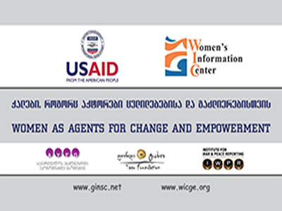The AYEG has started to implement the 2 year project "Women as Agents for Change and Empowerment" in partnership with Women Information Centre, “Taso” foundation, Institute for War and Peace Reporting and the local NGO from Gali, by the USAID financial support, aiming to support women’s full participation in Political, Economic and Peace building and Conflict Prevention Processes in Georgia in the target regions.